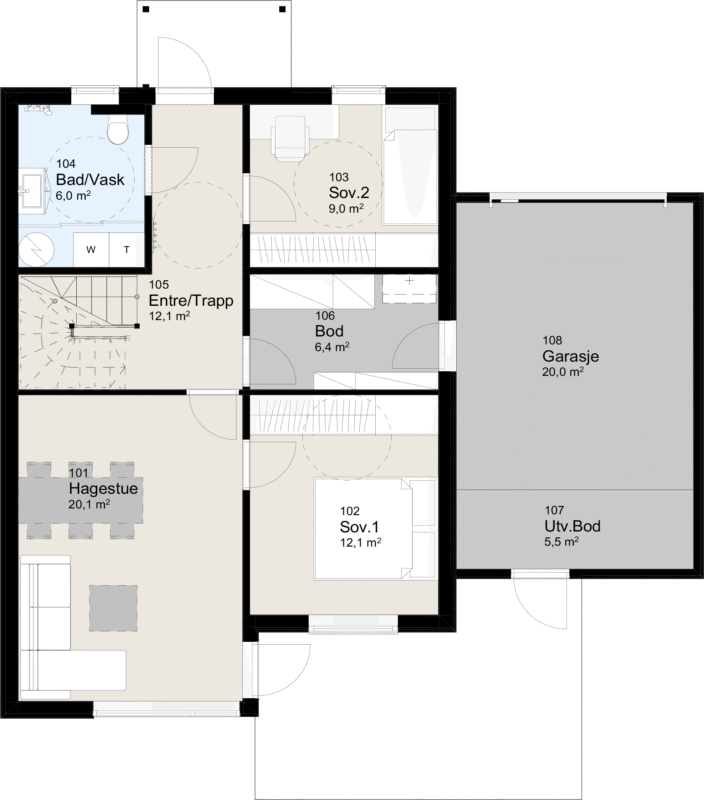 Stor bod med mulighet for dør ut til garasjen slik at du kan gå tørskodd inn fra bilen på regnværsdager.