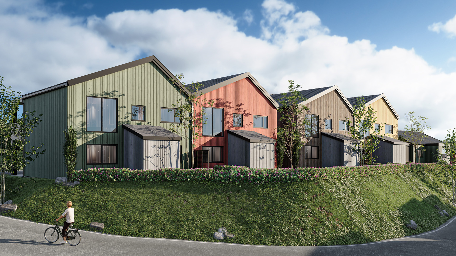 Spennende og moderne familieboliger i jordnære farger.